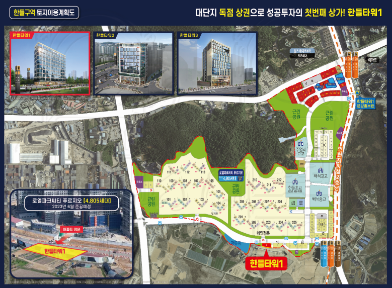 5000여 세대가 모두 입주 후 준공 되는 첫 번째 자리 메인 정문 바로 앞 한들 타워 1에서