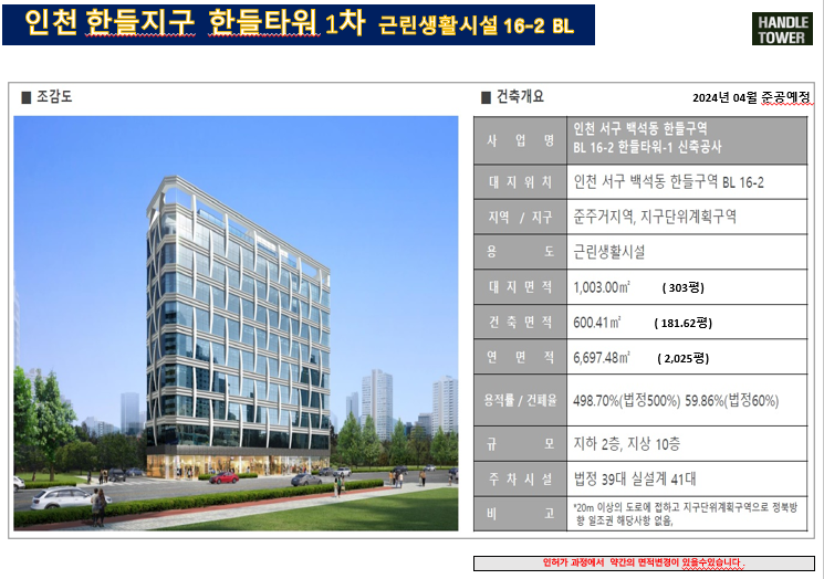 한들 타워 상업 시설이 24년 6월 준공 예정입니다.